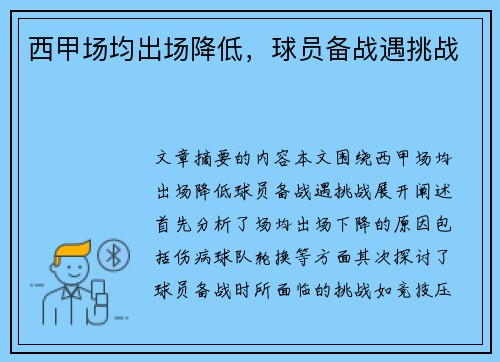 萨拉赫无缘30人名单,球迷震惊猜测原因---**摘要**:萨拉赫无缘30人名单一事在足球界引起广泛关注,球迷们纷纷表示震惊并猜测其原因。本文将从萨拉赫个人状态、国家队需求、教练决策以及外界因素等四个方面进行详细阐述,深入分析可能的原因。最后,结合萨拉赫无缘30人名单以及球迷猜测的原因进行总结,探讨对萨拉赫未来的影响。---**1、萨拉赫状态**萨拉赫在俱乐部和国家队一直是焦点,但最近他在场上状态明...